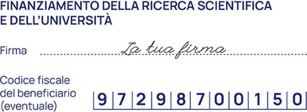 Nella tua dichiarazione dei redditi firma nel riquadro dedicato al “FINANZIAMENTO DELLA RICERCA SCIENTIFICA E DELL’UNIVERSITÀ” e inserisci il codice fiscale 97298700150 di Fondazione Veronesi.